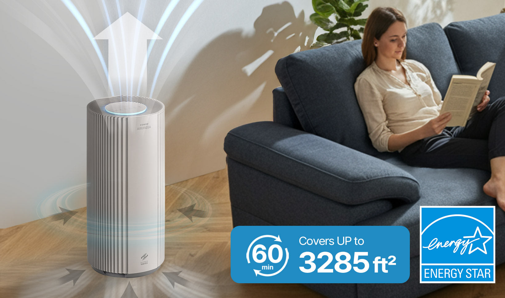 • Purifies 1,643ft² in 30 mins, 3,285ft² in 60 mins
